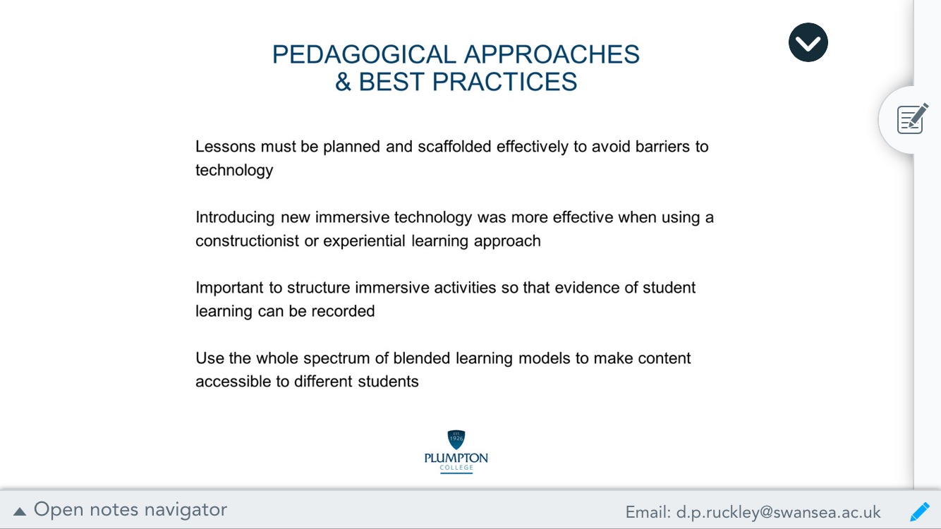 These are incredibly important for any lecturer who may want to utilise VR in their teaching and should form any strategy to using VR.